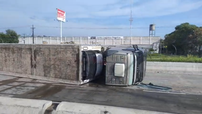 O acidente não apenas resultou no tombamento da carreta, mas também causou danos significativos à mureta que divide as vias da rodovia. Parte da estrutura foi destruída, espalhando blocos de concreto pela pista e levando à interdição do trecho.