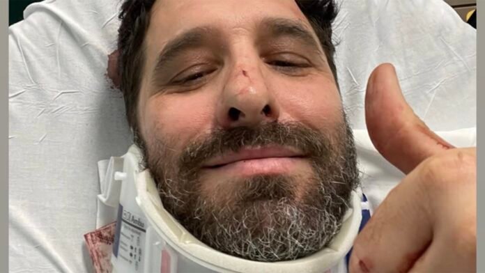 “Pessoalzinho no meu coração, essa madrugada foi muito feliz aqui em Nova York, caí de bicicleta, tava sem capacete, bati com a cabeça, apaguei no meio da rua, quebrei a clavícula”, começou ele.