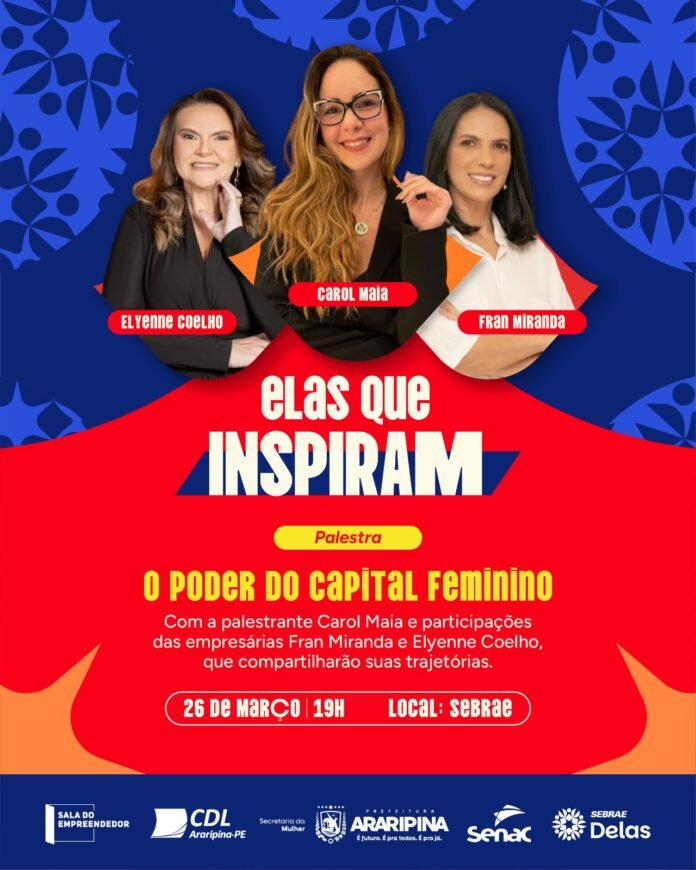 Araripina se prepara para uma noite de imersão em liderança e negócios. No próximo dia 26 de março, às 19h, o auditório do SEBRAE será palco do evento “Elas Que Inspiram”, uma iniciativa que busca conectar mulheres empreendedoras e compartilhar trajetórias de sucesso que transformaram o cenário econômico local.