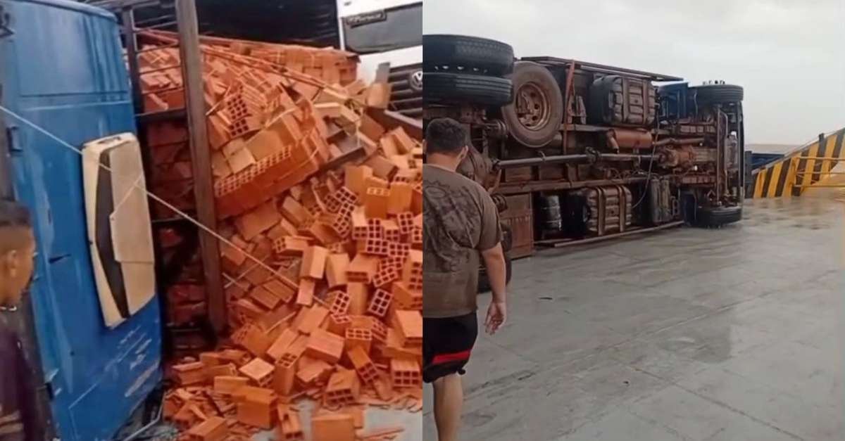 Na última sexta-feira, dia 27 de fevereiro, um caminhão carregado com tijolos tombou em uma balsa durante a travessia entre os portos de Icoaraci e Camará, em Salvaterra, no Marajó. O acidente ocorreu enquanto a embarcação, operada pela Master Motors, enfrentava condições adversas de mar, resultando na destruição parcial da carga e gerando repercussão nas redes sociais.