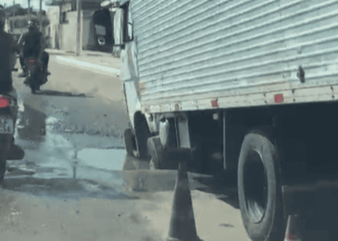 Na manhã desta segunda-feira, 9 de outubro, um incidente inusitado ocorreu na Avenida Nordeste, nas proximidades do bairro José e Maria, localizado na Zona Norte de Petrolina. Um caminhão, ao trafegar pela via, caiu em um buraco, resultando na imobilização do veículo com uma de suas rodas presa na abertura.
