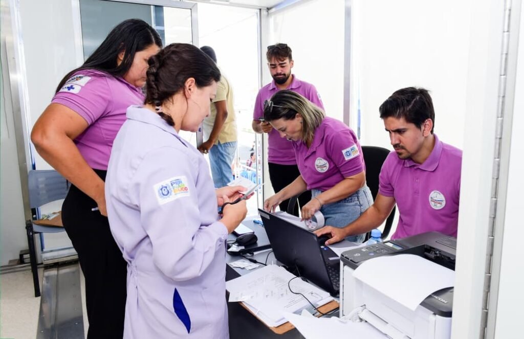 A população conta ainda com uma cadeira odontológica móvel, destinada à realização de avaliações bucais e ao encaminhamento dos pacientes para suas Unidades Básicas de Saúde (UBS) de origem.