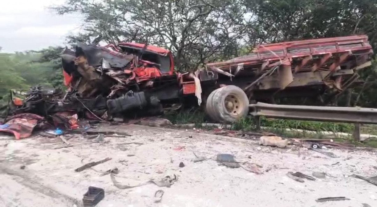A colisão frontal entre dois caminhões foi devastadora, com as cabines dos veículos completamente destruídas. Um dos caminhões transportava pó de gesso, enquanto o outro estava vazio no momento da batida. A investigação inicial indica que o caminhão que transportava gesso pode ter invadido a faixa contrária, contribuindo para o acidente.