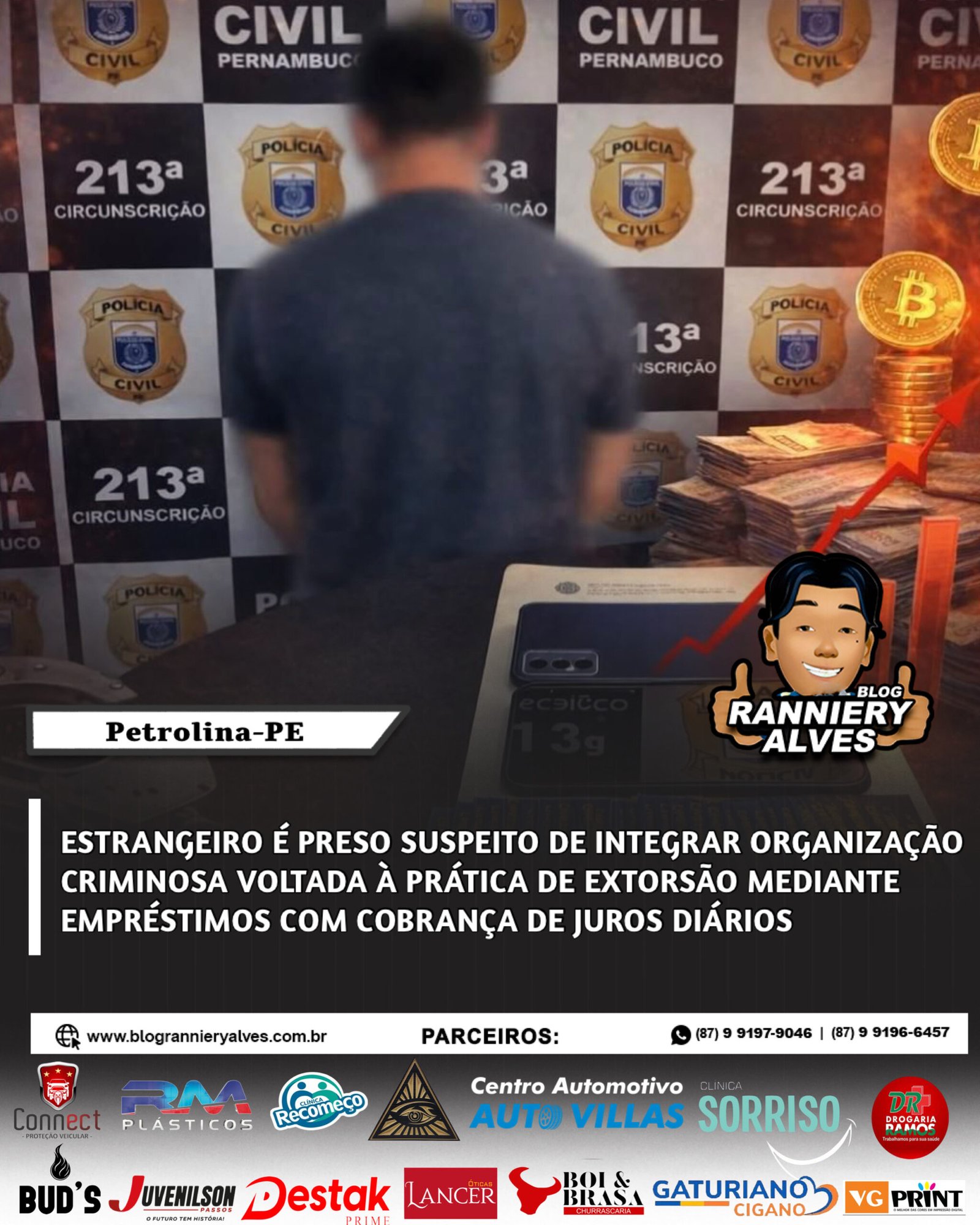 Recentemente, a Polícia Civil de Petrolina, em Pernambuco, efetuou a prisão de um cidadão colombiano sob a acusação de estar envolvido em uma organização criminosa dedicada à extorsão. O foco das investigações gira em torno de um esquema de empréstimos que impõe aos devedores a cobrança exorbitante de juros diários.