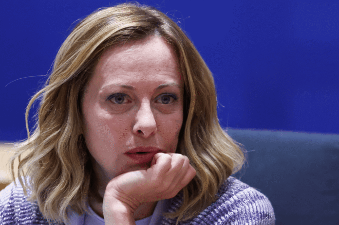 Primeira-ministra da Itália, Giorgia Meloni, durante reunião de cúpula da União Europeia, em ...