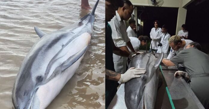Na última segunda-feira, uma descoberta surpreendente chamou a atenção dos habitantes de Mosqueiro, um distrito de Belém, no estado do Pará. Um golfinho-listrado (Stenella coeruleoalba), uma espécie que normalmente habita águas profundas do oceano, foi encontrado sem vida na praia de Ariramba, em uma área de água doce. Este evento é particularmente significativo, uma vez que a presença desse animal em um ambiente tão distante de seu habitat natural é extremamente rara.