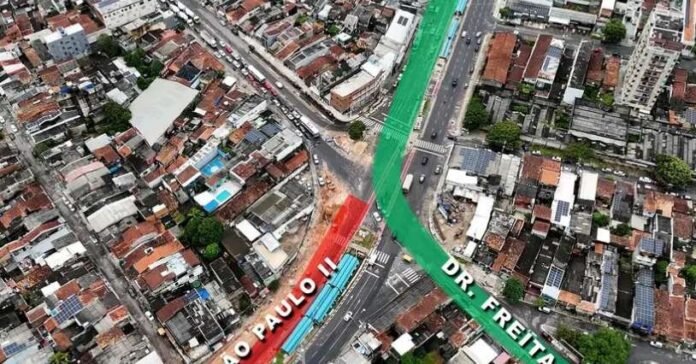 A partir de hoje, 9 de outubro, um segmento das avenidas João Paulo II e Cosme e Damião, na direção de saída de Belém, estará sujeito a interdições parciais até o dia 29 de abril. Essa ação, coordenada pelo Núcleo de Gerenciamento de Transporte Metropolitano (NGTM), visa a construção de um novo viaduto no cruzamento com a Avenida Dr. Freitas.