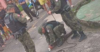 Diante da situação, a Polícia Militar, por meio do Batalhão de Polícia Ambiental (BPA), foi acionada e rapidamente se deslocou até o local. A equipe, especializada em manejo de fauna silvestre, utilizou técnicas apropriadas para capturar o jacaré de maneira segura, evitando ferimentos ao animal e garantindo a segurança dos civis que observavam a cena com curiosidade e apreensão.