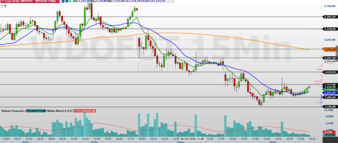 No gráfico intraday, o minidólar apresentou uma recuperação ao longo do dia, encerrando acima das médias móveis de 9 e 21 períodos, o que sugere uma tentativa de estabilização. No entanto, ainda não há uma confirmação de reversão de tendência. Para que o ativo retome sua trajetória de alta, será necessário um volume comprador robusto que consiga romper a resistência situada entre 5.219 e 5.232,5 pontos.