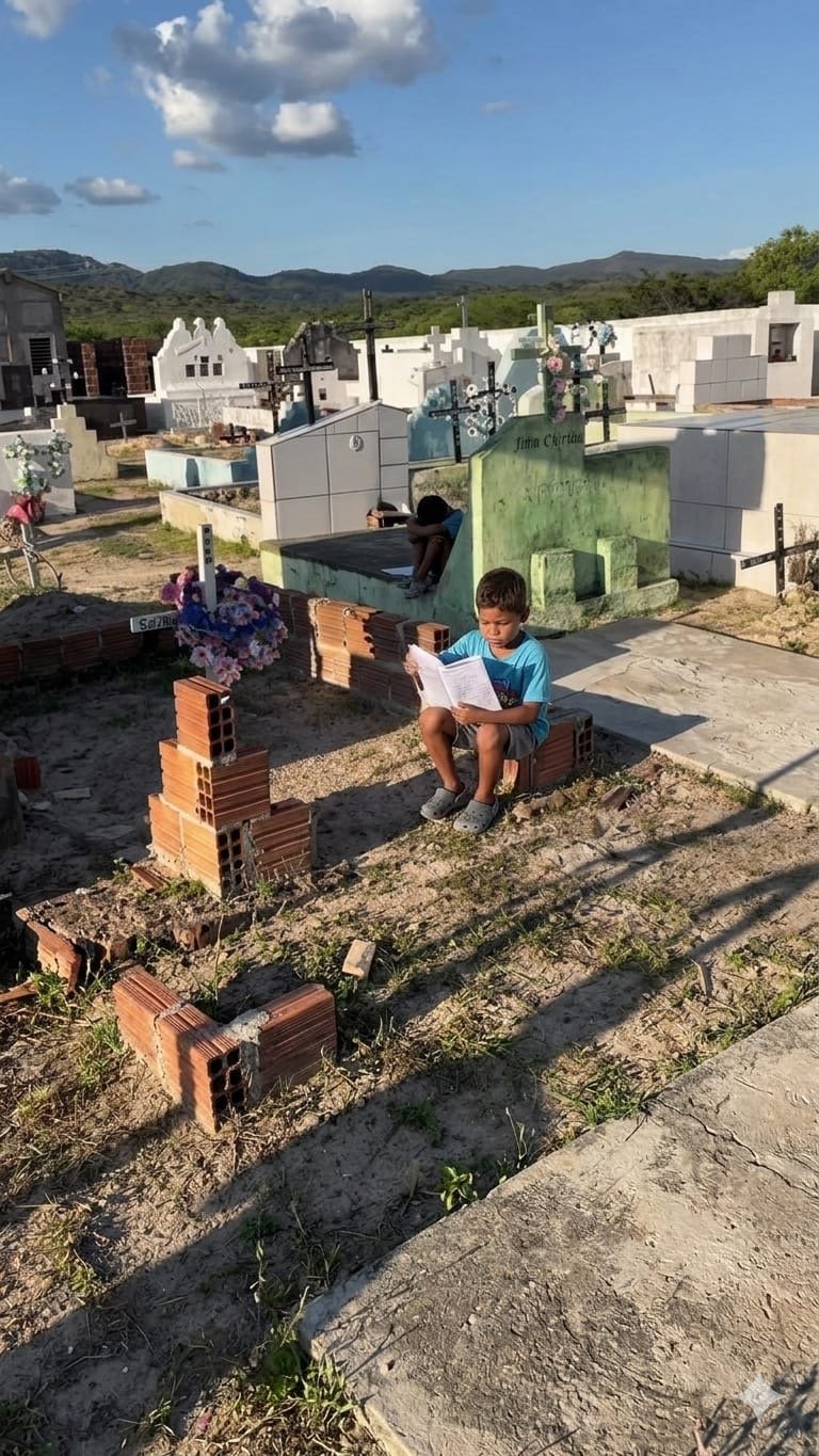 Pequeno Herói: Menino de 6 anos é flagrado em cemitério “mostrando” notas escolares para a mãe falecida
