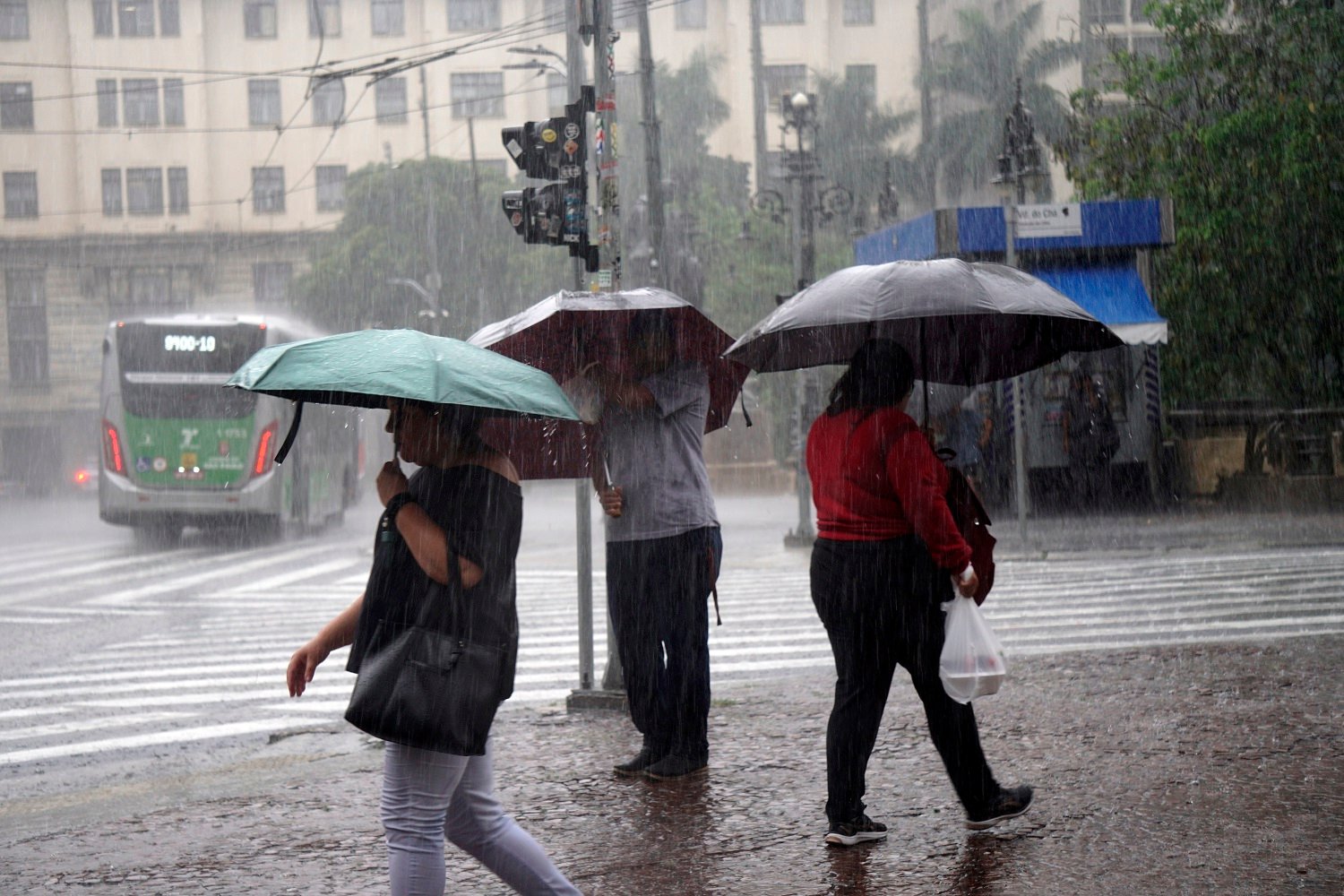 SP - CHUVAS/SP/ALERTA - GERAL: Pedestres enfrentam chuva na região central da cidade de São Pau...