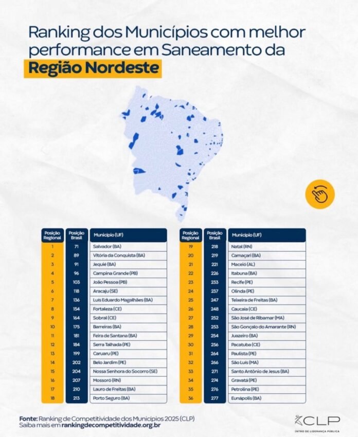 Serra Talhada, um município localizado no estado de Pernambuco, obteve uma posição notável no Ranking de Competitividade dos Municípios 2025, divulgado pelo Centro de Liderança Pública (CLP). Com essa avaliação, a cidade se destacou entre as doze melhores em termos de desempenho em saneamento na Região Nordeste do Brasil.