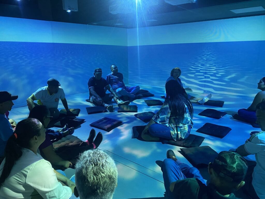 A iniciativa une arte, tecnologia e consciência ambiental, promovendo reflexões sobre a importância da água e da preservação dos mares para a vida no planeta.